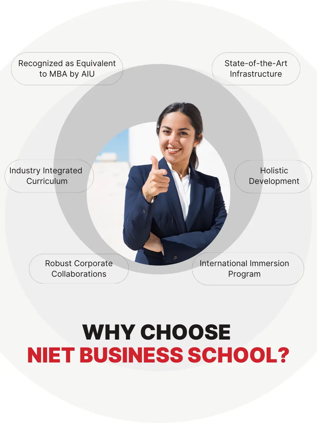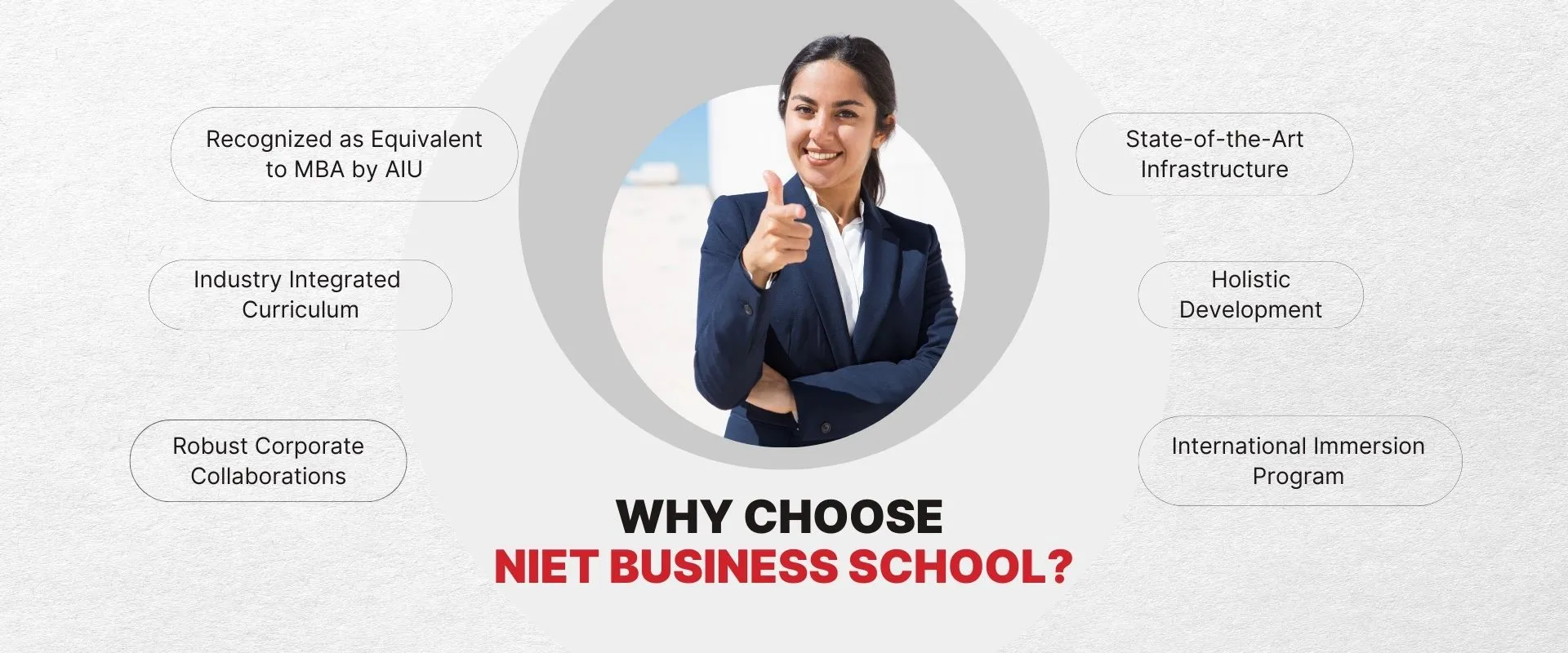 NIET Business School blends rigorous academic foundations with hands-on exposure to real business problems, ensuring that every learner graduates with clarity, confidence, and a clear career direction.